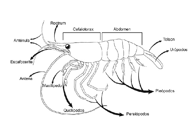 Anatomía de los camarones de agua dulce